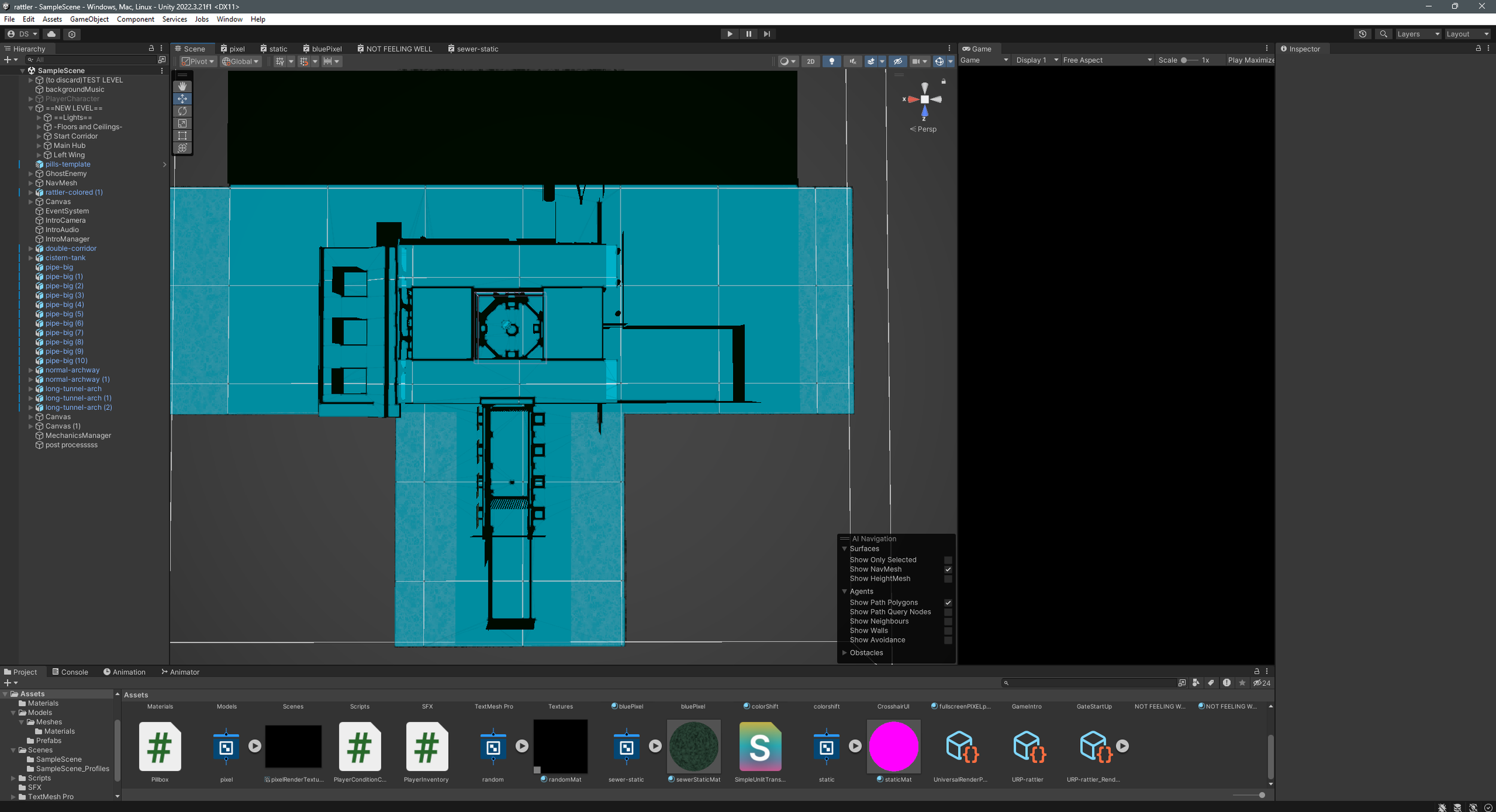 This was a solo project, and every asset in the game is made solely by me. I mostly focused on the level design for a chaser game (enemy chasing the player constantly), and on atmosphere-heavy retro aesthetic. I learned a lot about level design and how important metrics and grid-based design is for interiors. As time did not allow me for more modular design in Unity, I handmade the rest of the level in Blender.